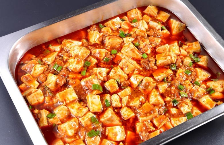 麻婆豆腐(Mapo doufu),是四川省传统名菜之一,属于川菜。主要原料为配料和豆腐,材料主要有豆腐、牛肉末(也可以用猪肉)、辣椒和花椒等。麻来自花椒,辣来自辣椒,这道菜突出了川菜“麻辣”的特点。其口味独特,口感顺滑